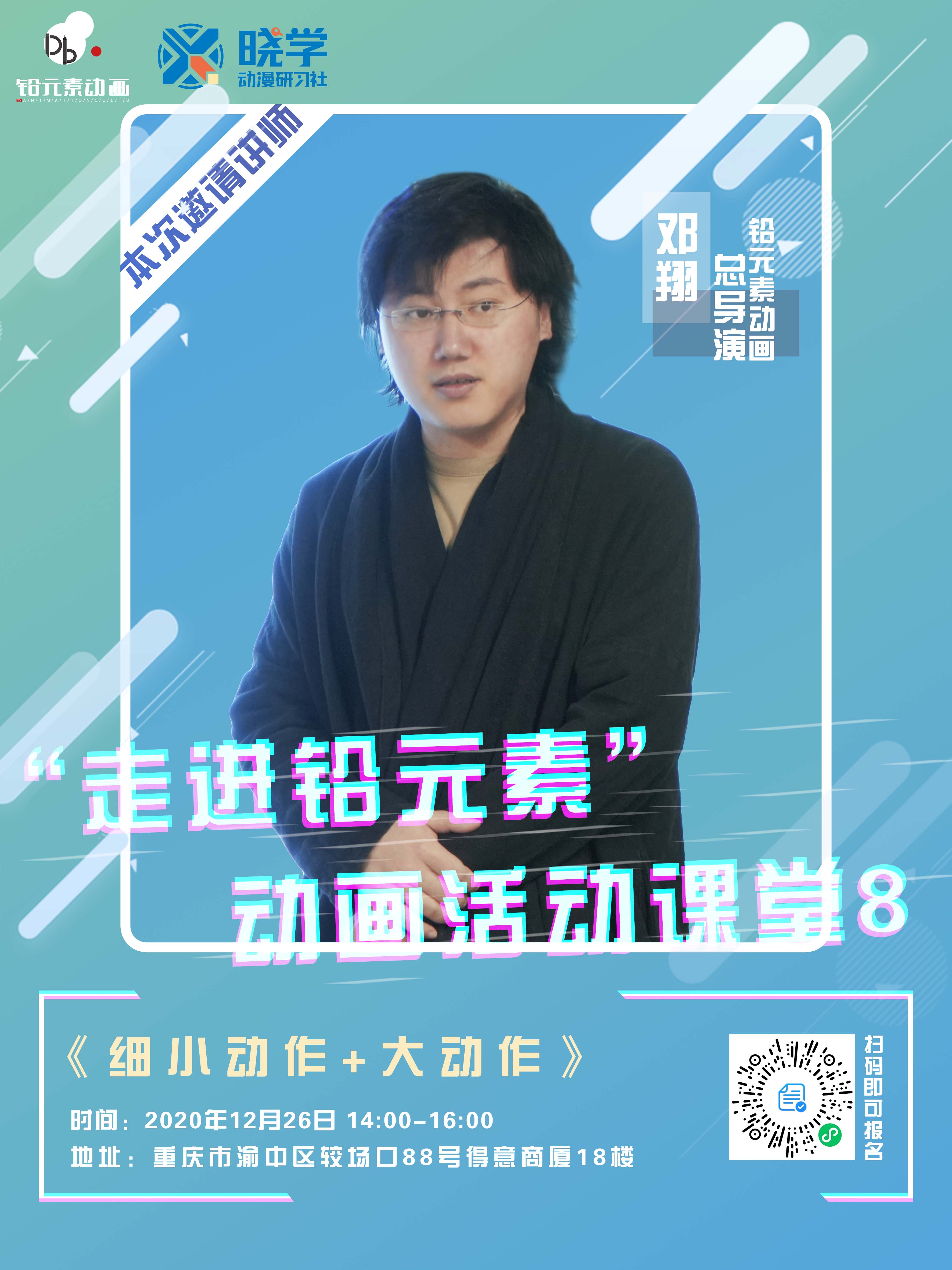 上周六(12月26日),“走进铅元素”动画活动课堂第八期课程圆满结束,邓翔总导演在课堂上详细解读了大动作和细动作的异同,以及各自的处理方法。